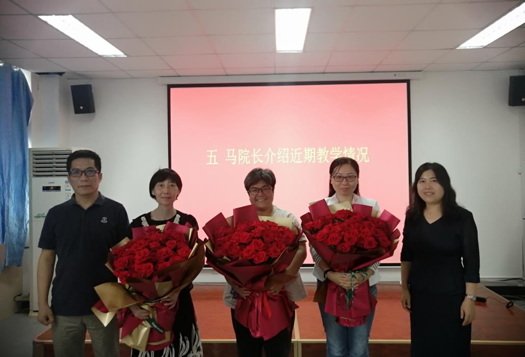 白彦刚书记和李艳双院长为赵淑华、刘萍和王海青三位新疆支教教师送上了行前的真挚祝福和温馨叮嘱并赠送鲜花。随后,赵淑华老师作为教师代表进行发言,表示在援疆期间将继续学习,全力发挥自身专业优势,为新疆地区教育的发展奉献最大的力量。