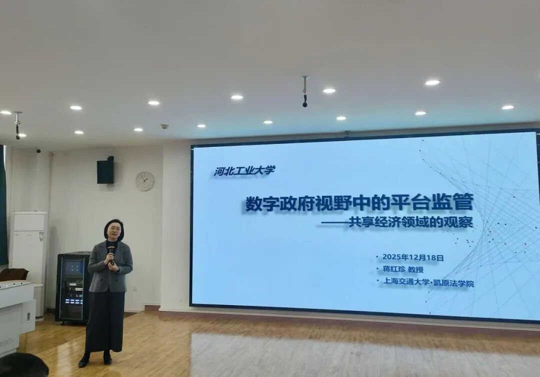 蒋冰晶院长首先对蒋红珍教授的到来表示热烈欢迎,她指出在数字中国与法治政府协同推进的今天,平台监管已成为连接技术、市场与法律的前沿议题,本次讲座对培养学生的跨学科思维与解决真实法律问题的能力具有重要意义。