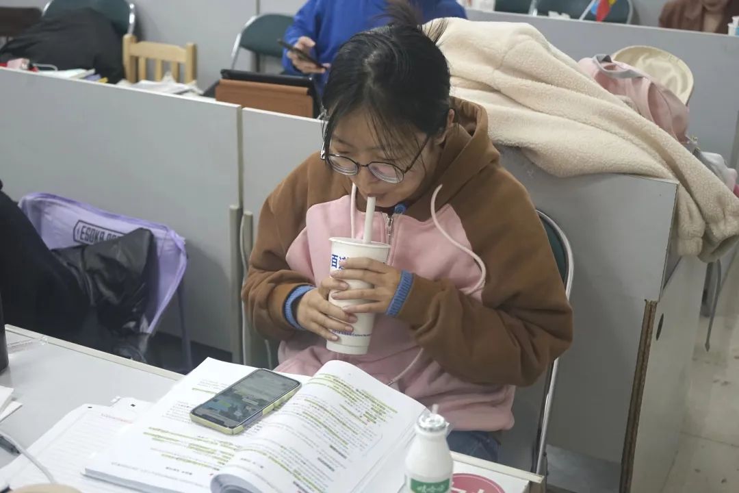 考研学子表示:能够坐在专门的自习室中学习,能够收到学院的奶茶,是十分的喜悦,这个欢喜让寂寂考研变得更加温暖,自己也更有动力。有学院老师们的关注,即使离家千里之外,在学院里依然感受了家的温暖,在复习备考的日子里很安心、很暖心。