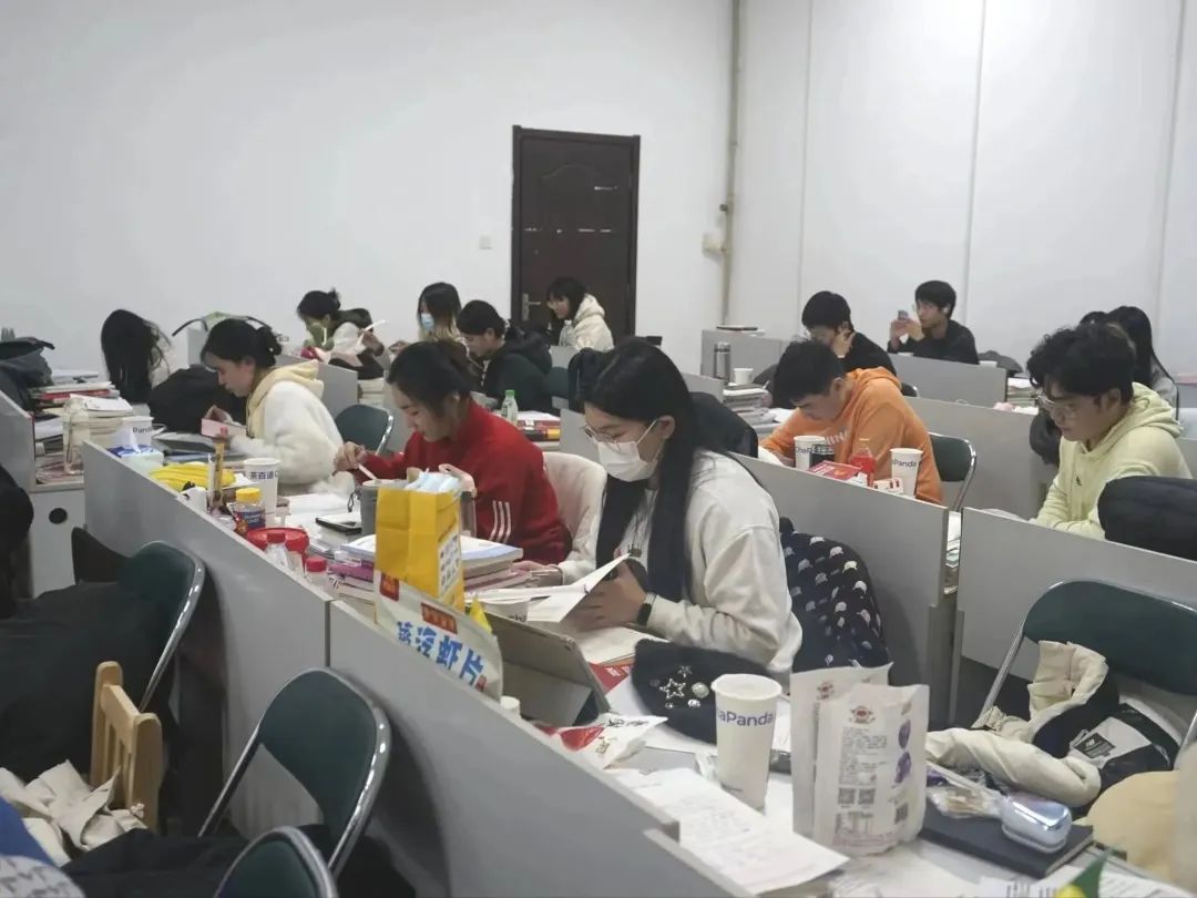 忙忙碌碌的光阴中,是考研人的诵读朗朗;随处可见的角落里,是考研人钻研的忘我专注。无数的日夜辛劳,他们晨昏勤苦、披星戴月、披风踏雪。文法学院的老师们目睹学子们的努力与辛劳,感动心疼着他们的学子,时刻关注着学子们的生活与学习,始终做学子们坚强的后盾。作为文法考研人背后的支撑,学院始终关心着她的“孩子”,无处不在的细节如温水般清润而悠长,温暖而透亮。