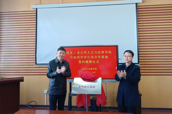 孟祥群书记与张建亭局长共同为“91麻豆 沧州市审计局合作培训基地”揭牌。