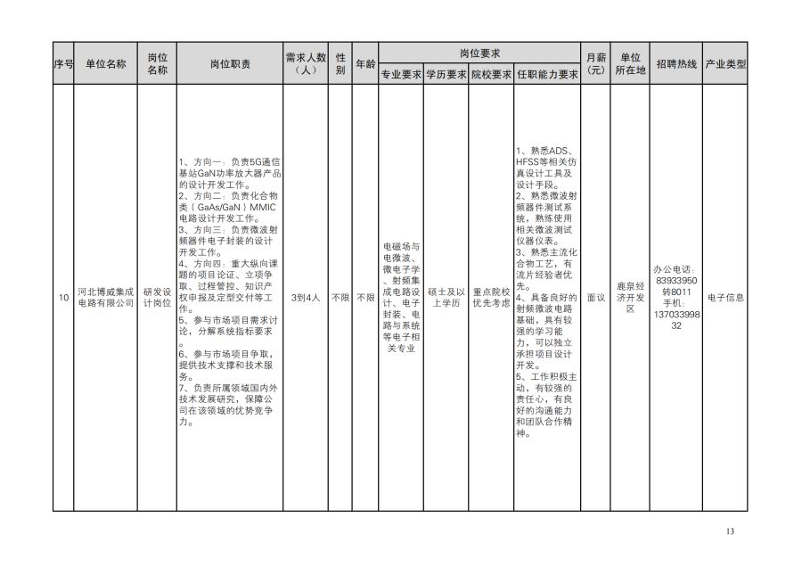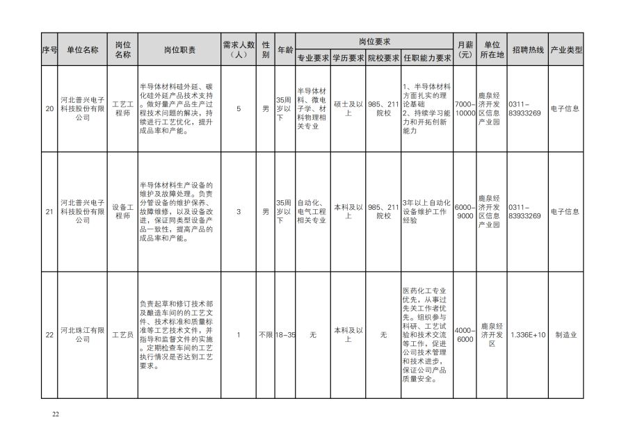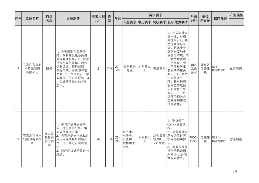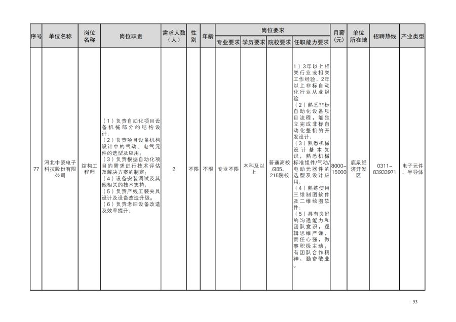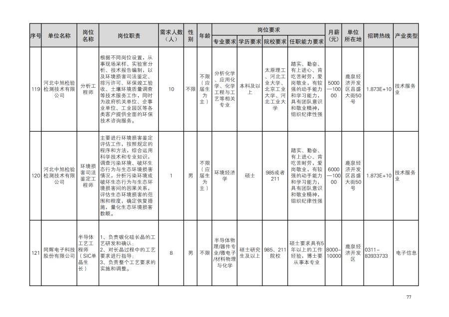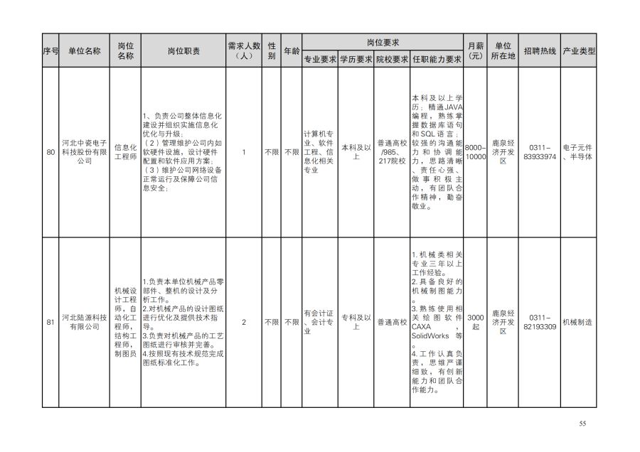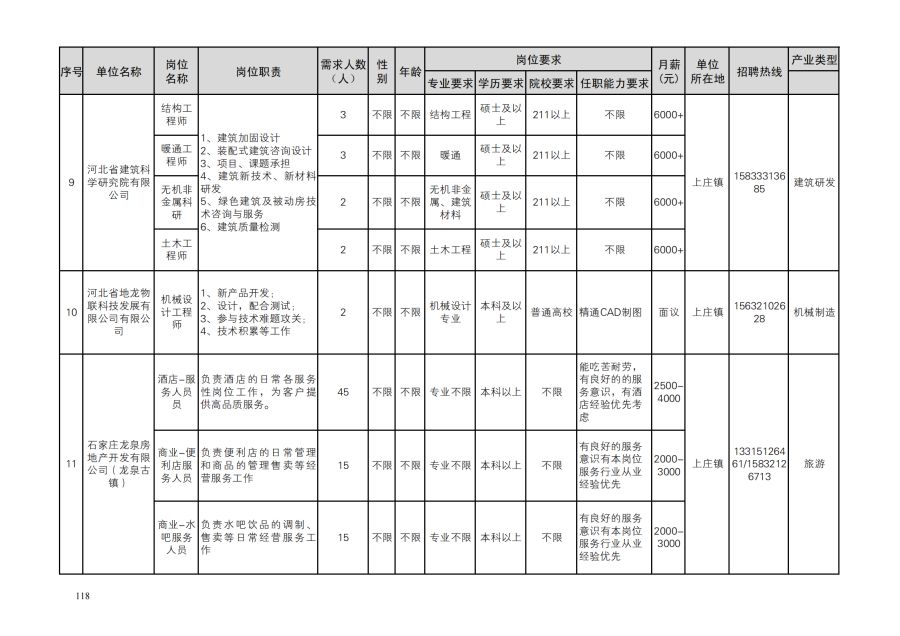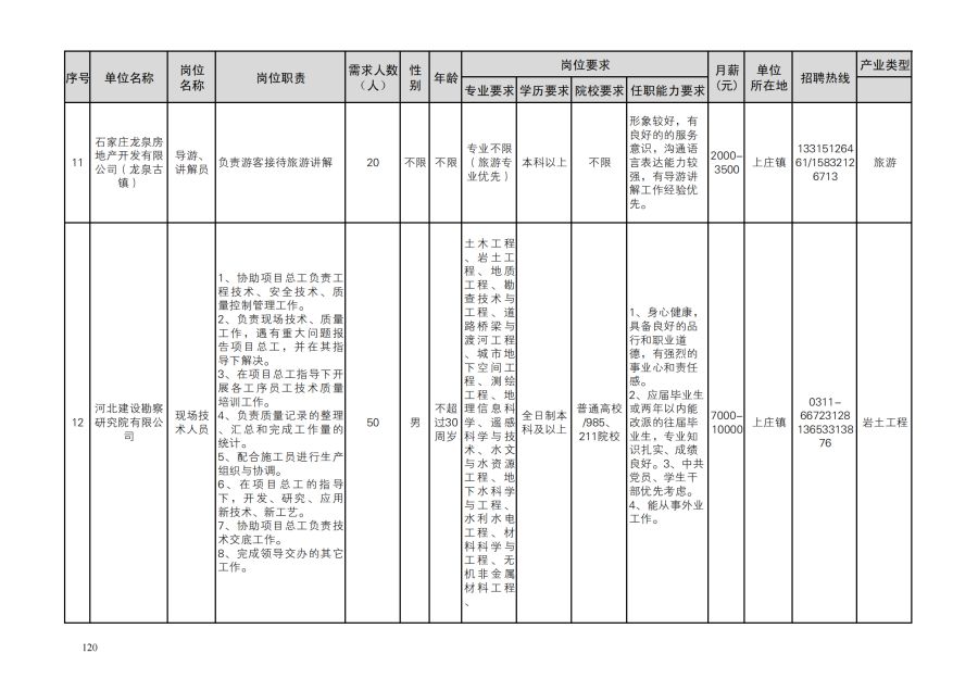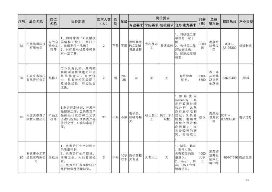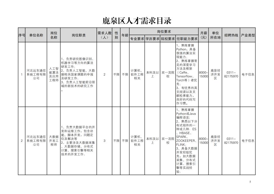 鹿泉区人才需求目录
