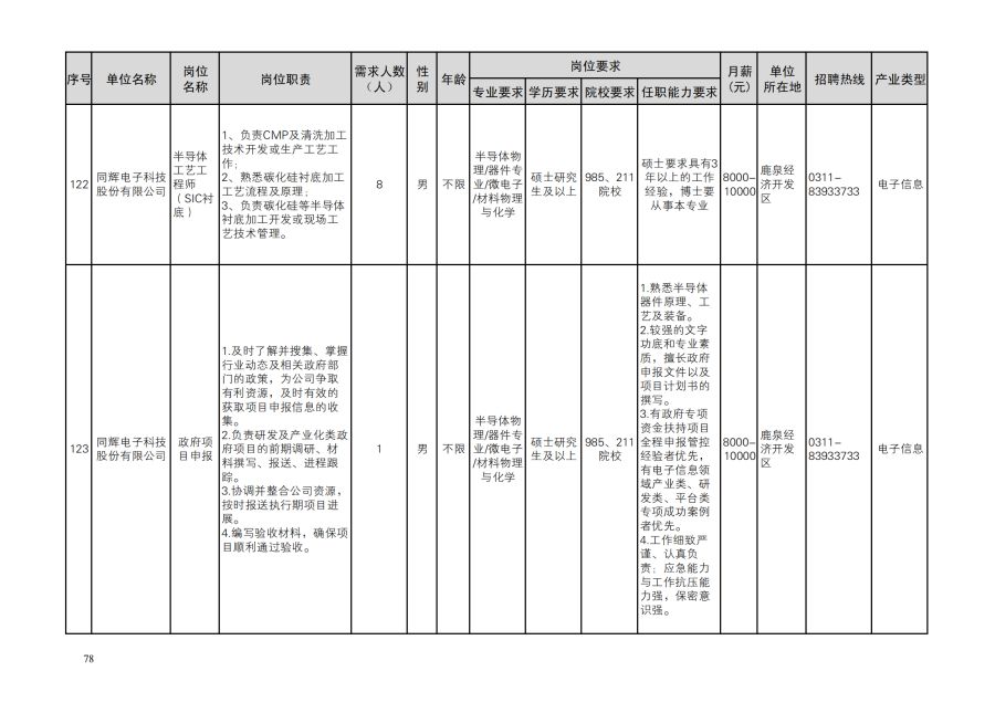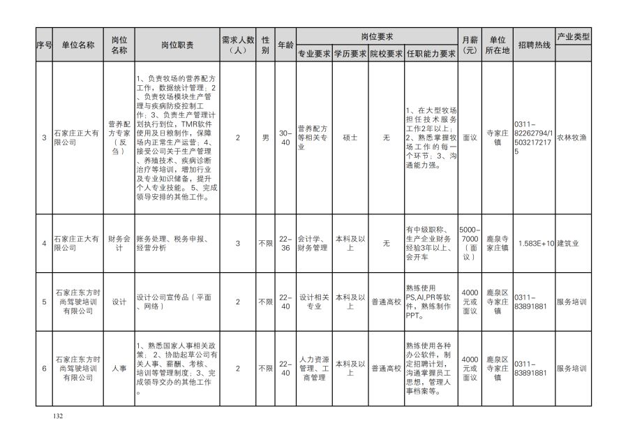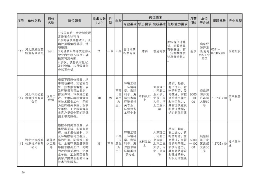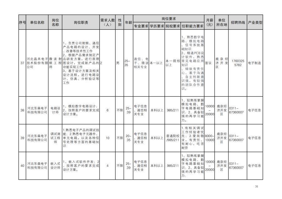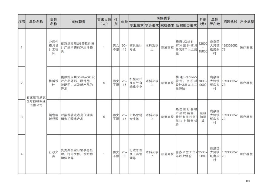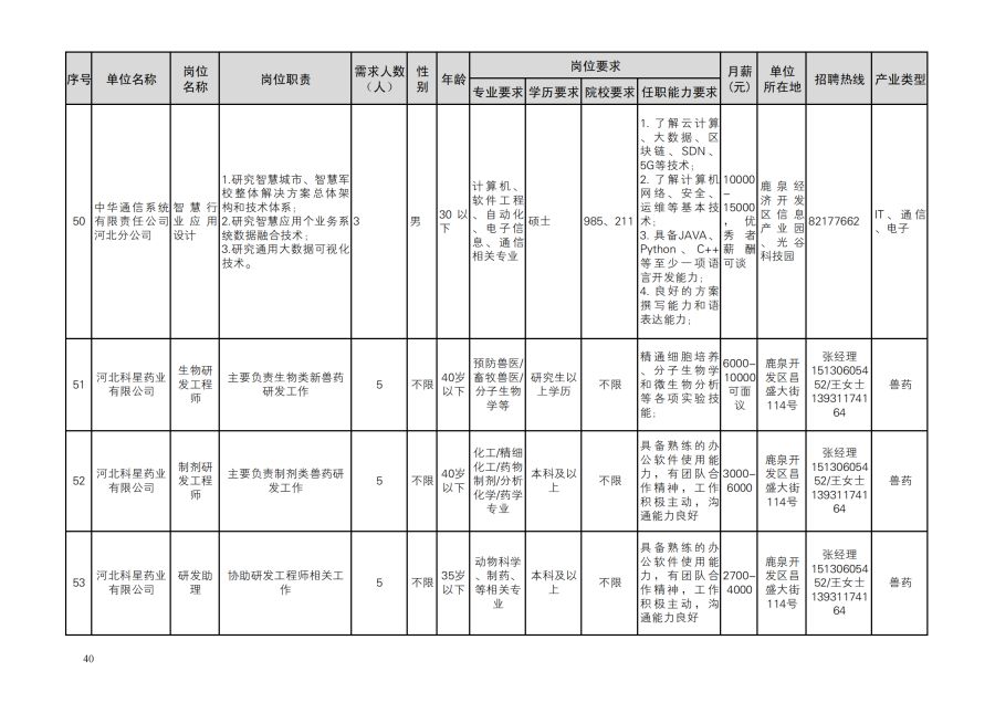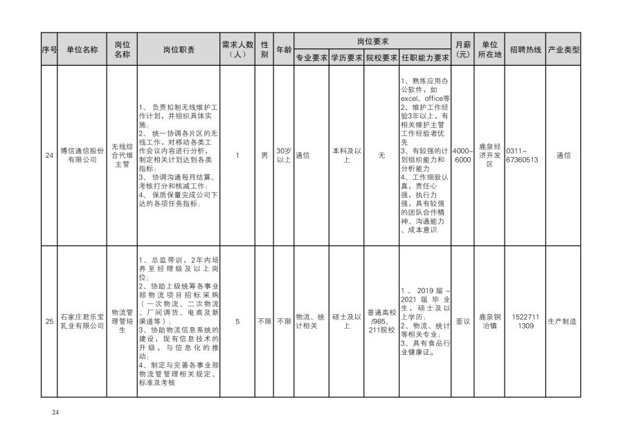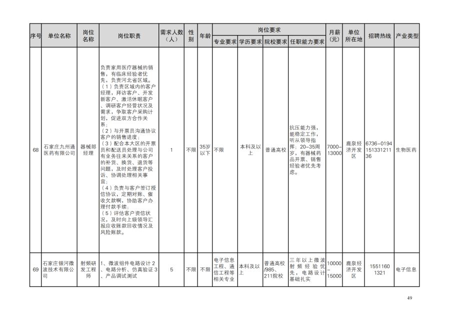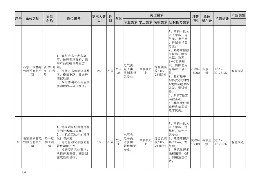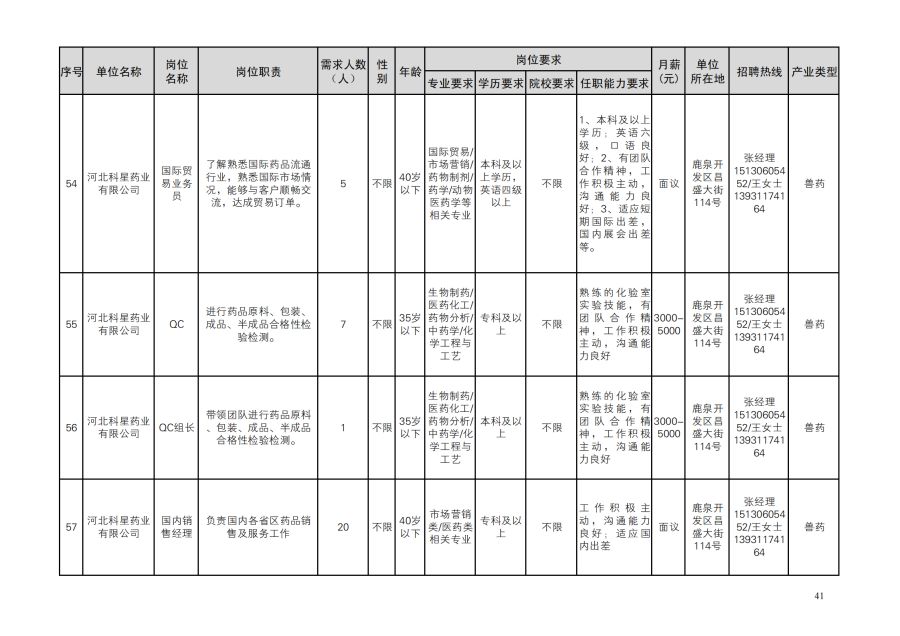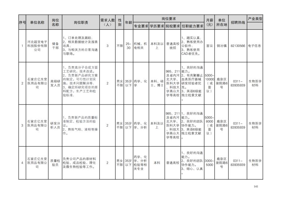 鹿泉区人才需求目录