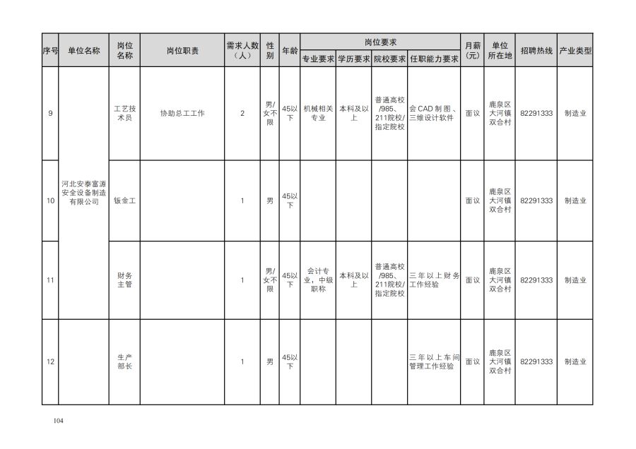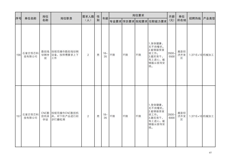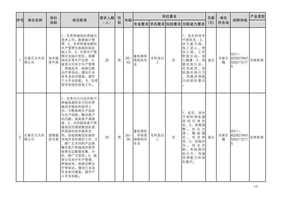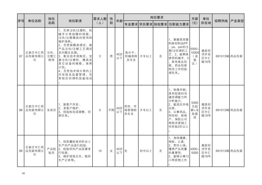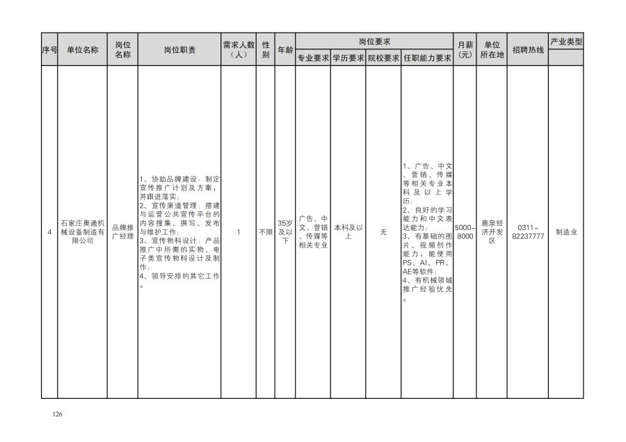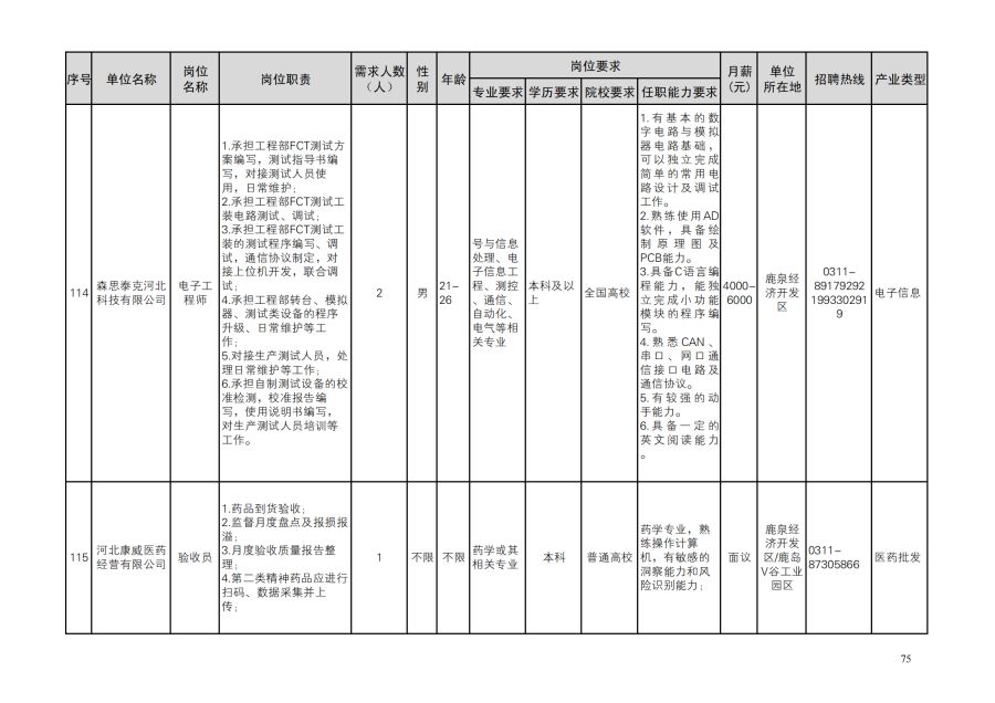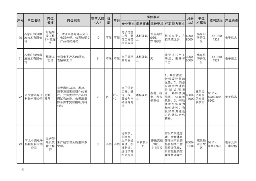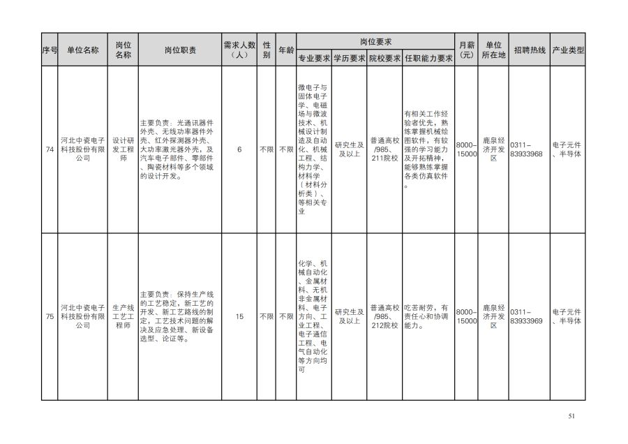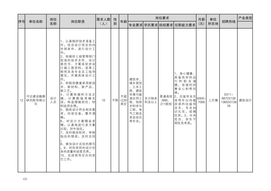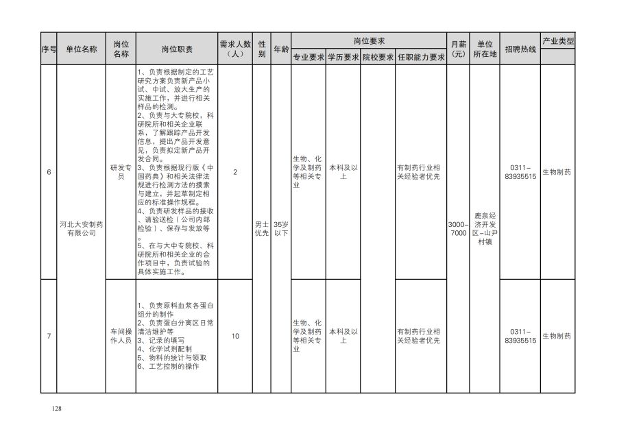 鹿泉区人才需求目录