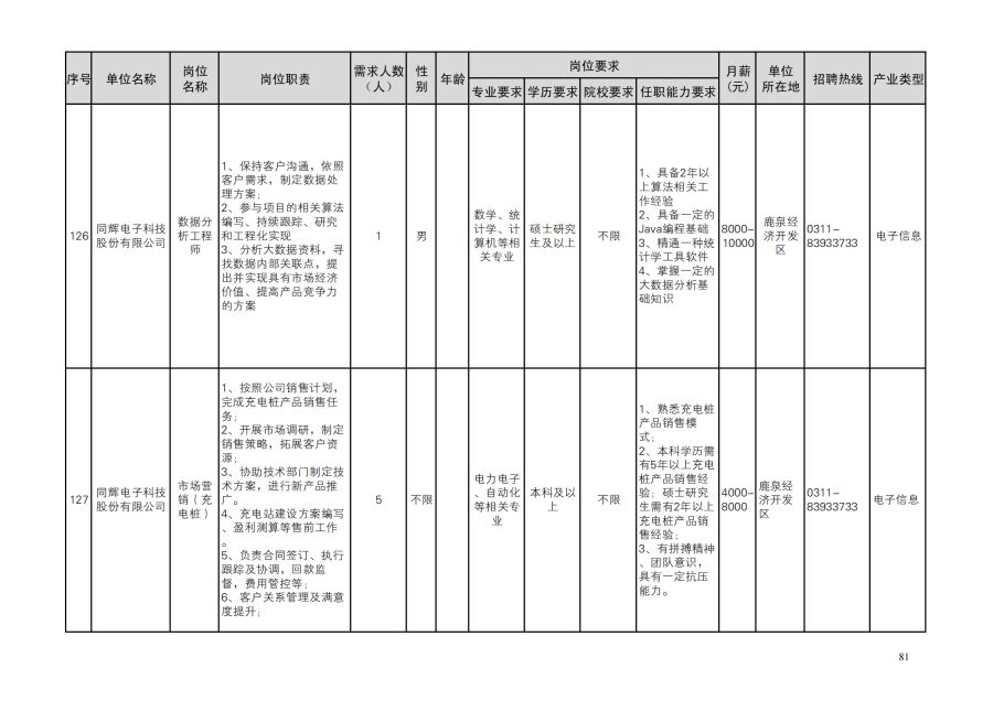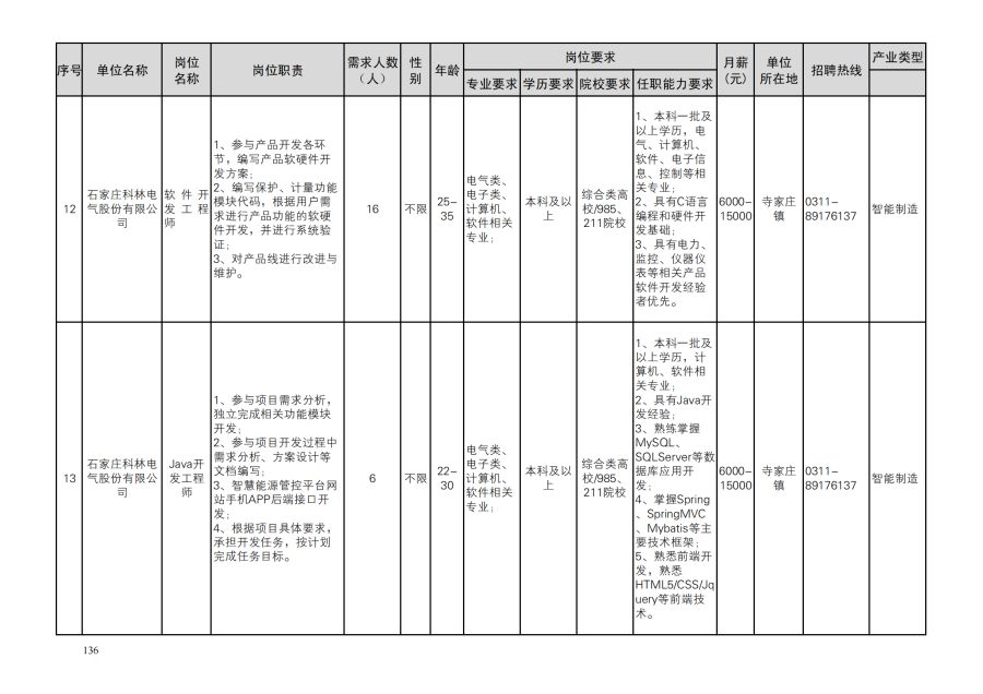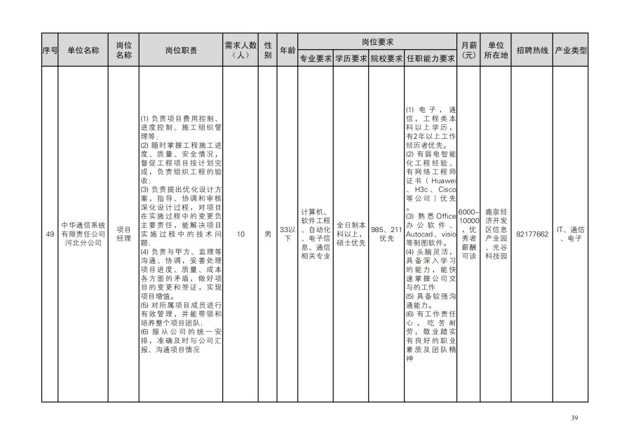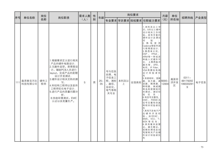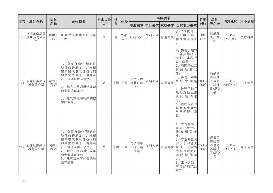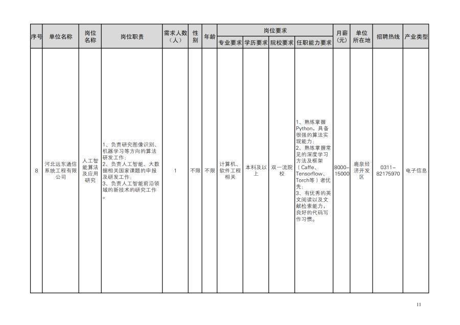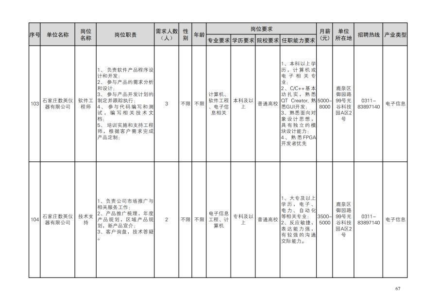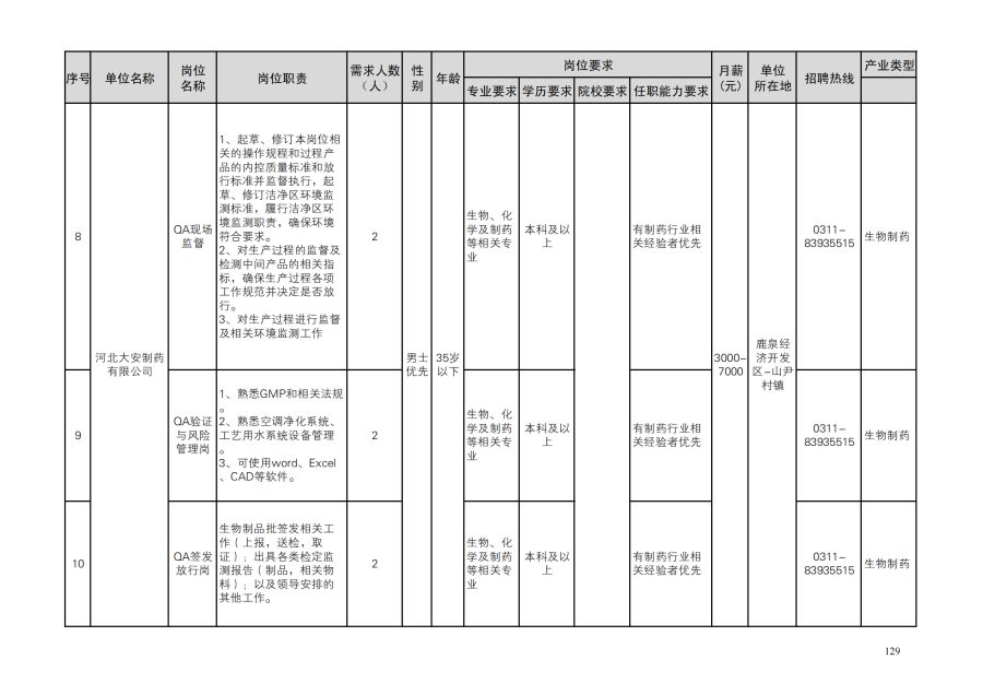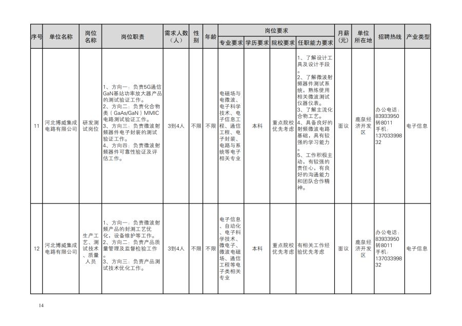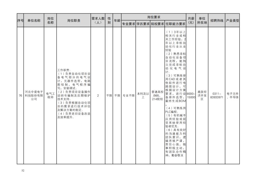 鹿泉区人才需求目录
