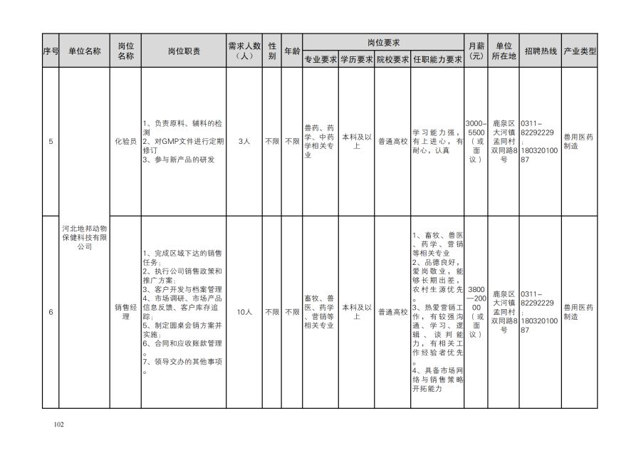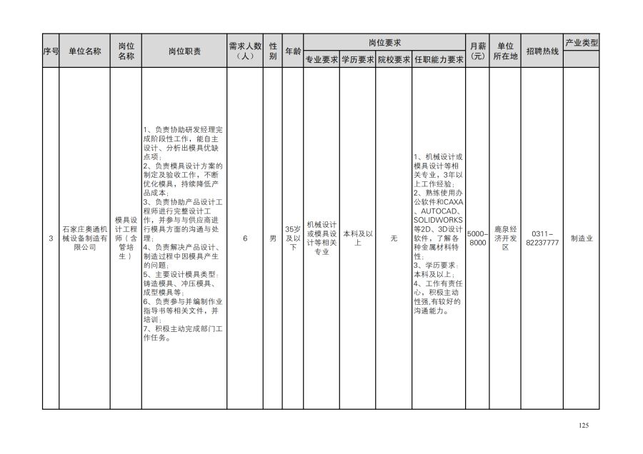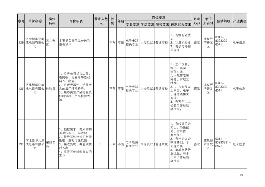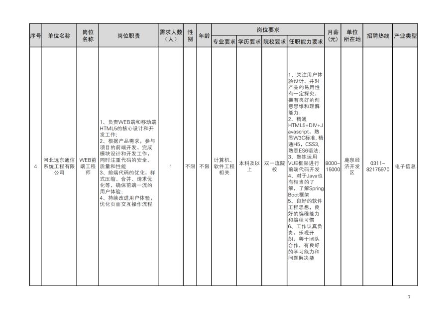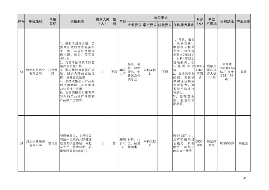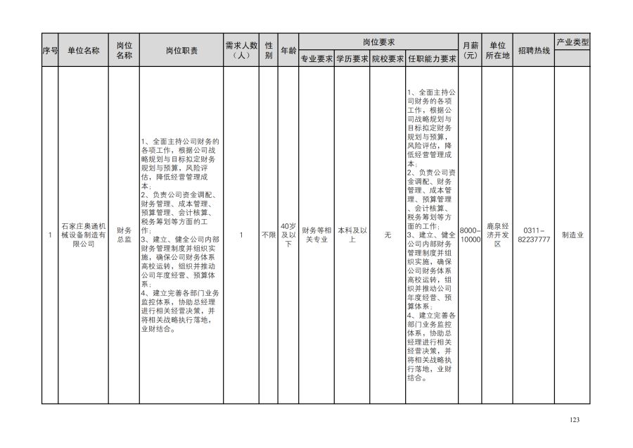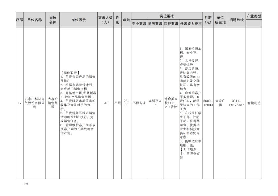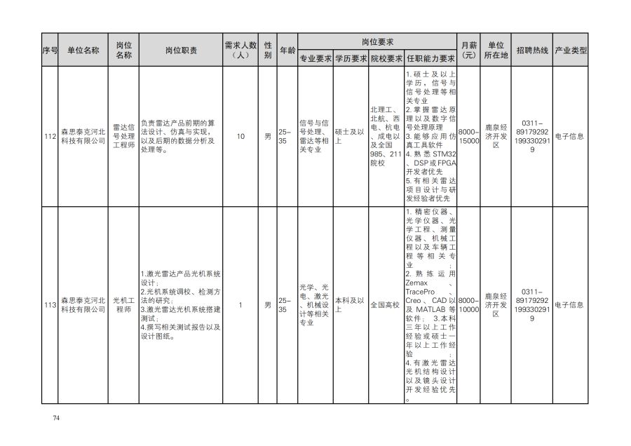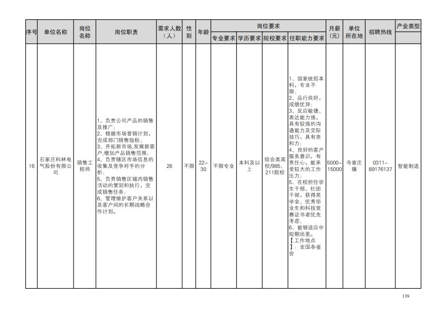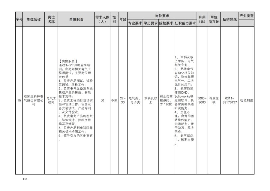 鹿泉区人才需求目录