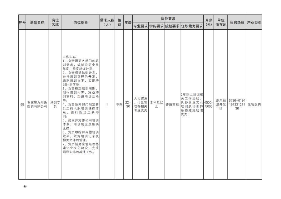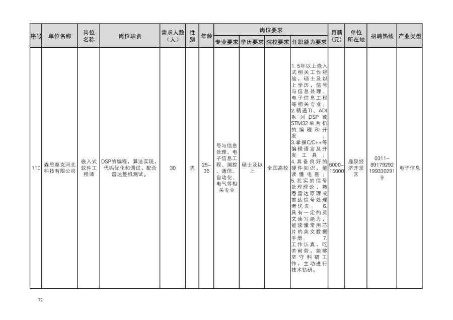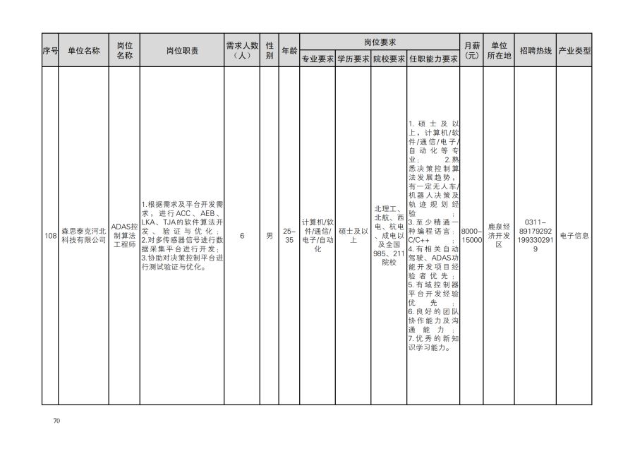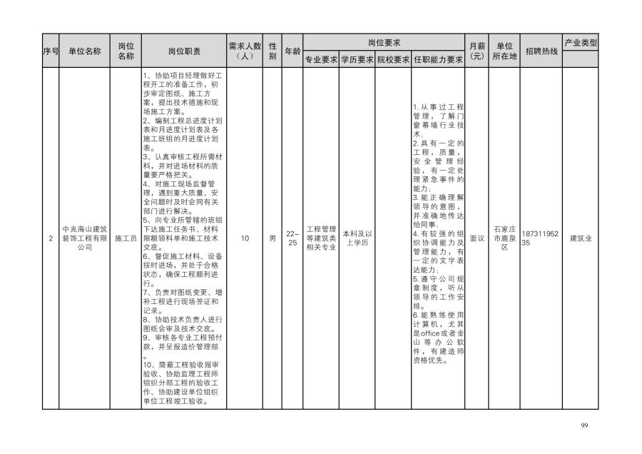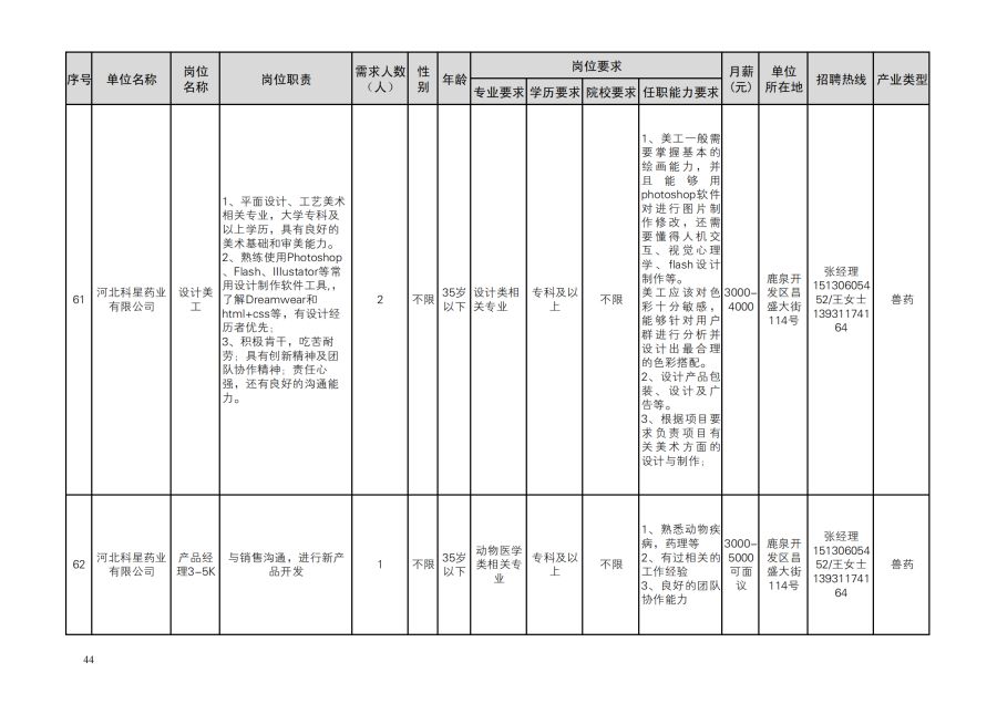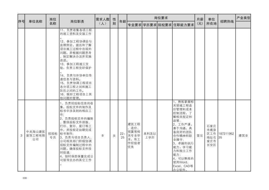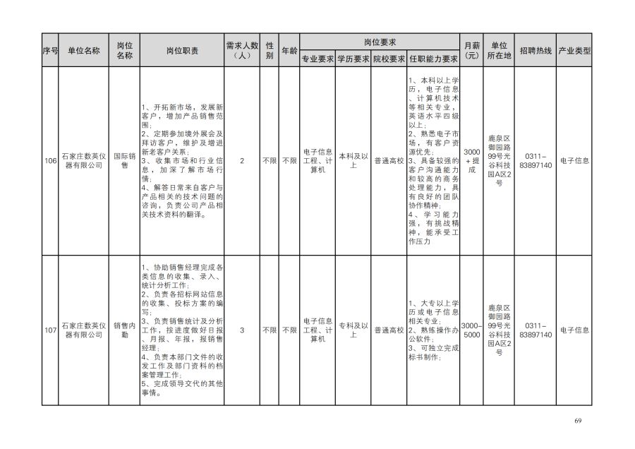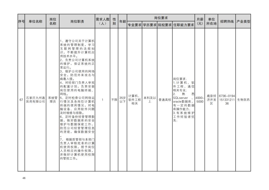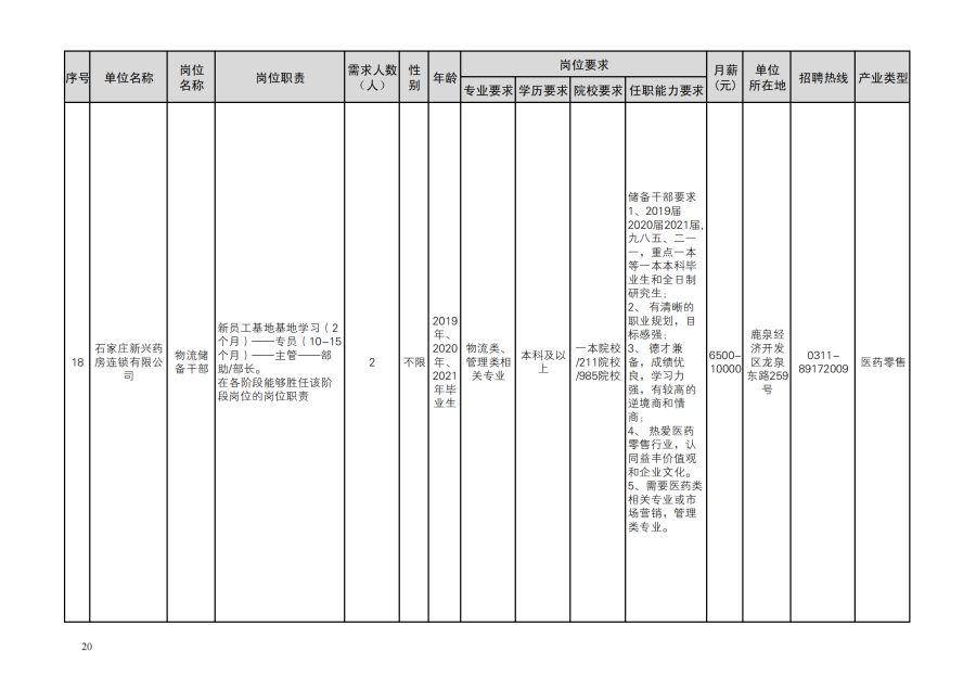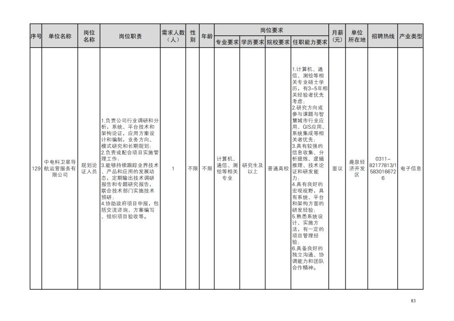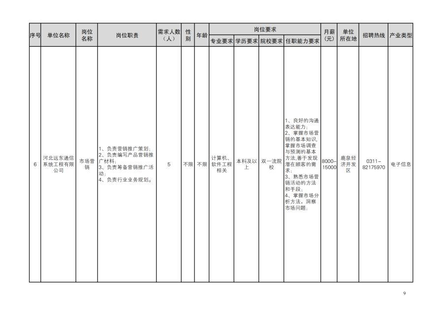 鹿泉区人才需求目录