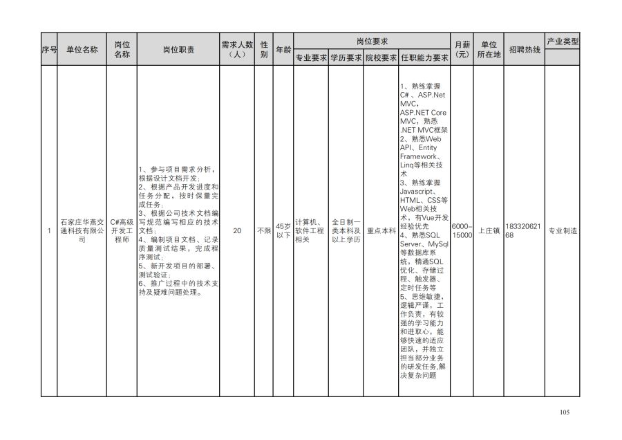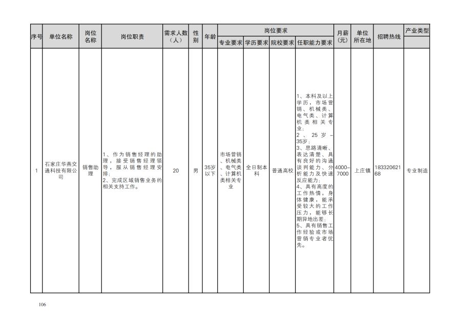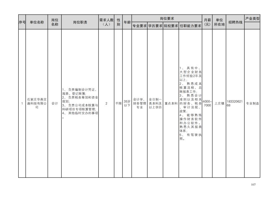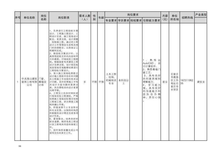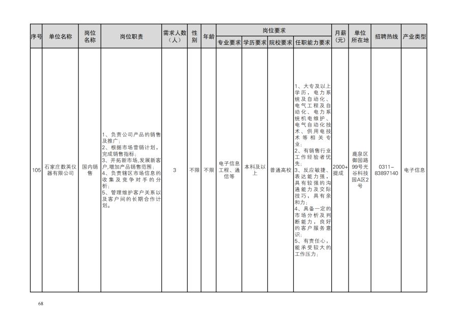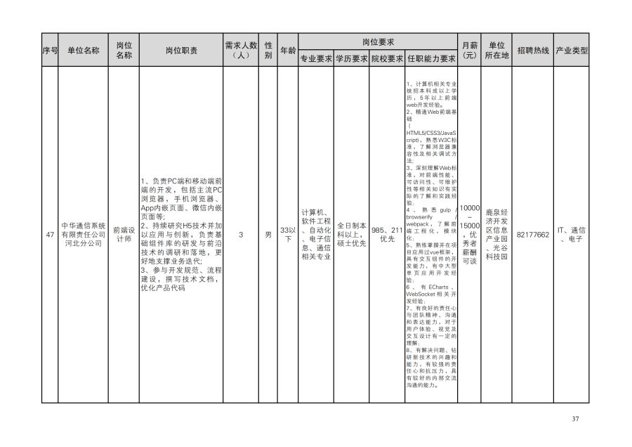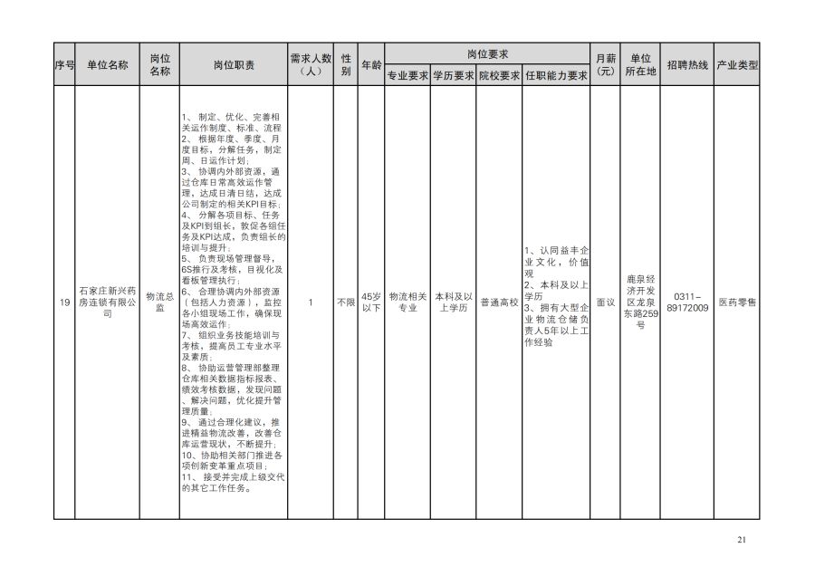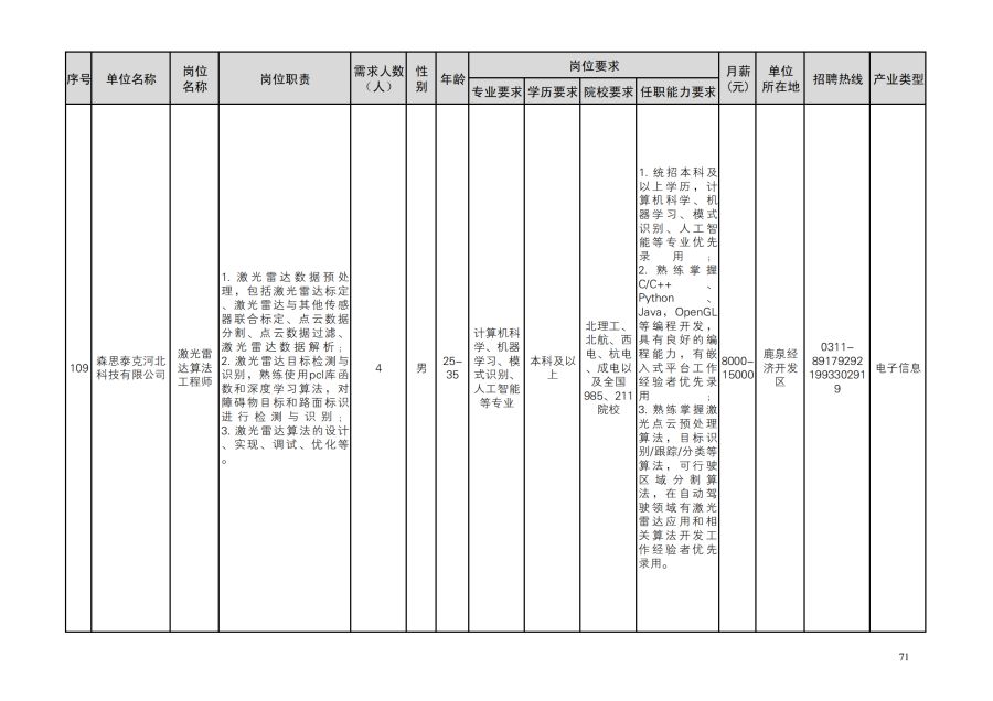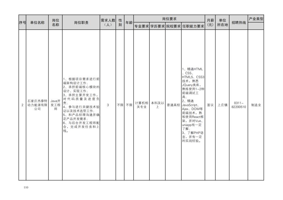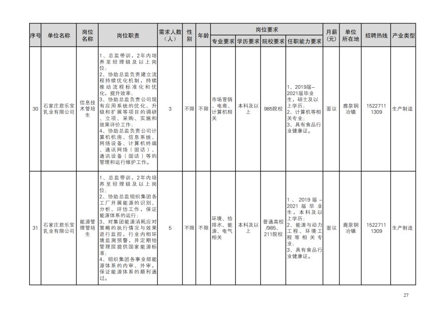 鹿泉区人才需求目录