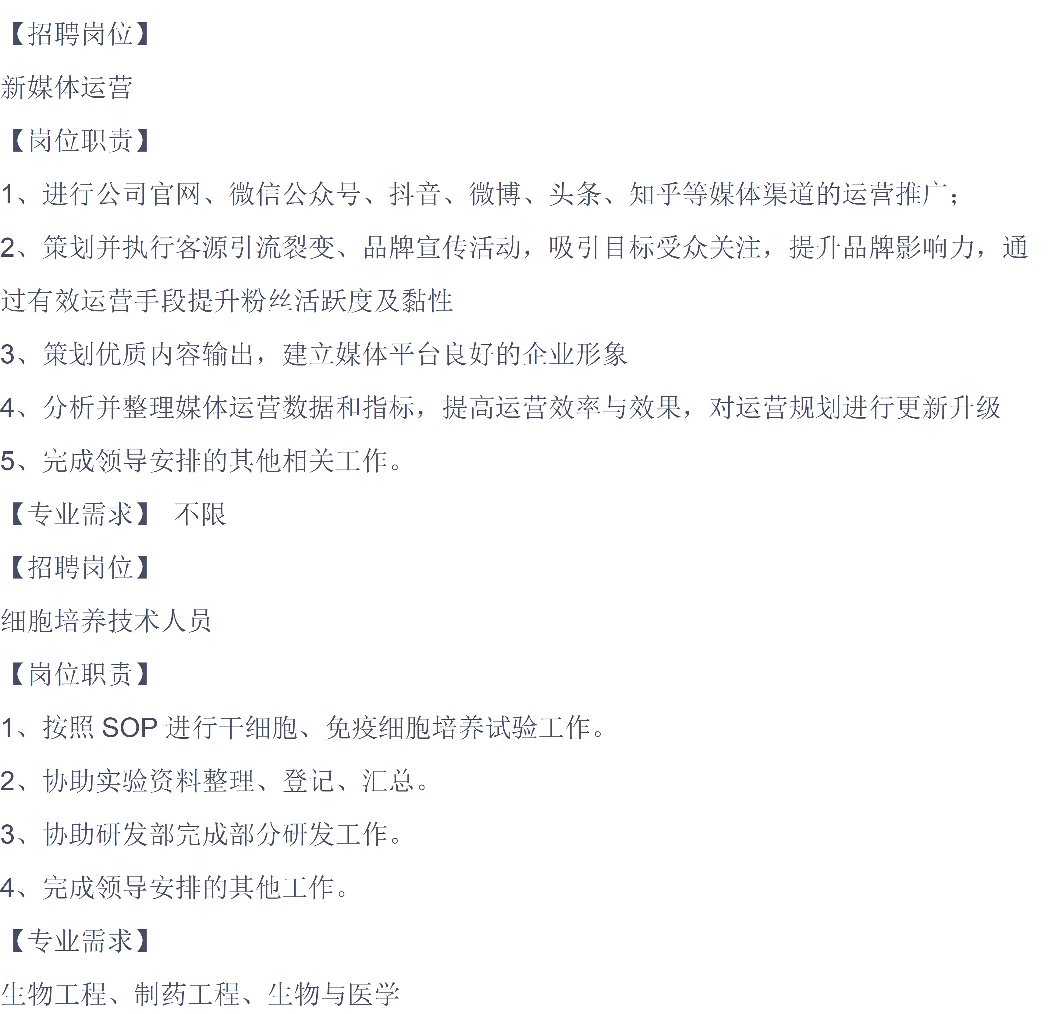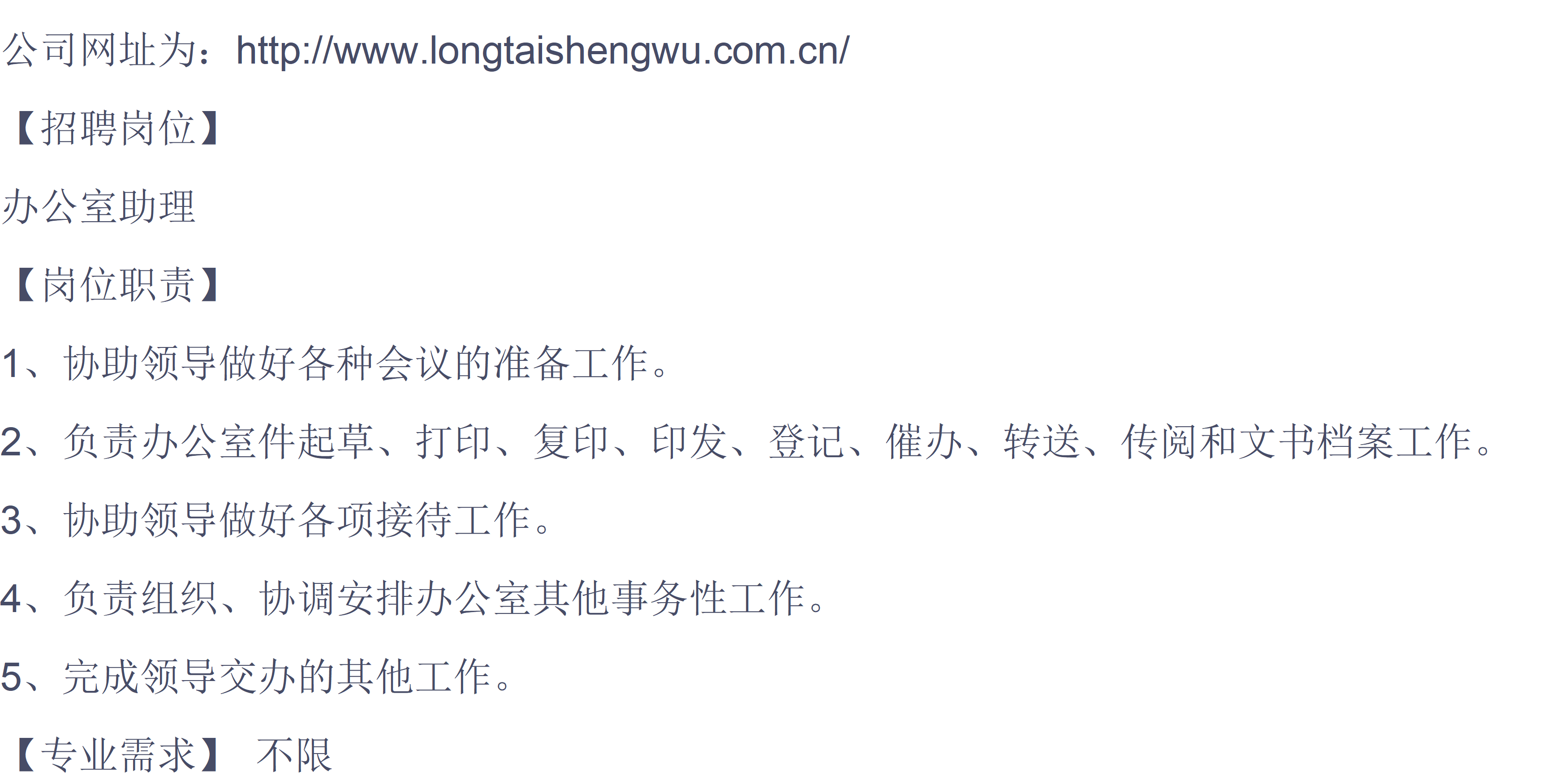 隆泰银信生物科技有限公司招聘简章