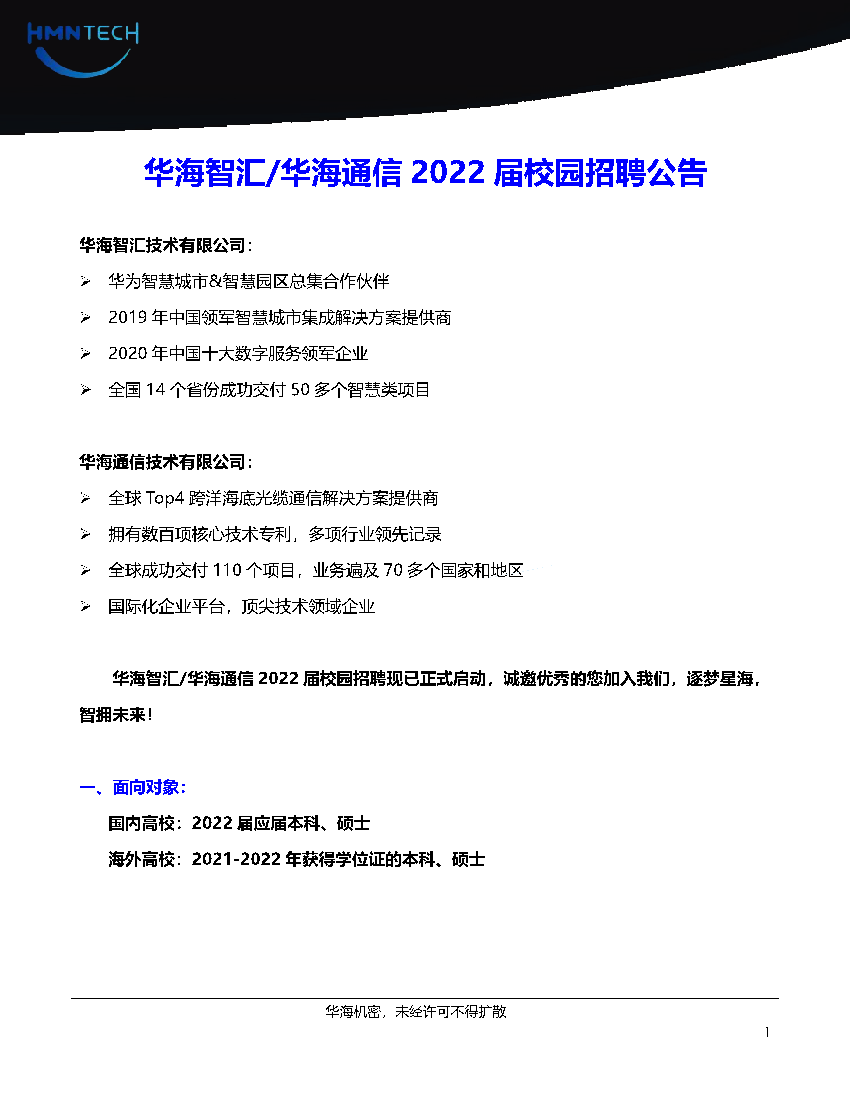 华海智汇/华海通信2022届校园招聘公告