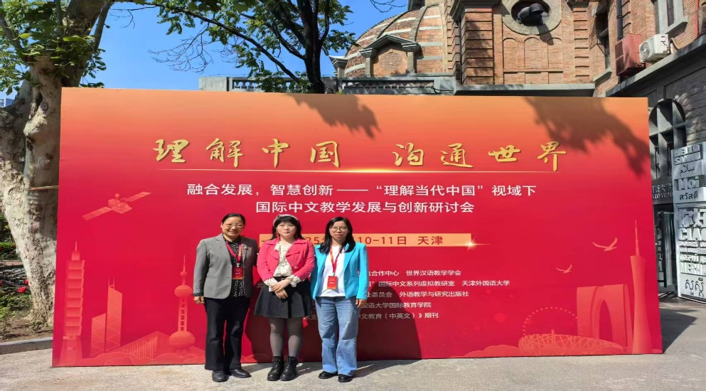 为促进国际中文课堂高质量发展,推动国际中文教学持续创新,在教育部中外语言交流合作中心、世界汉语教学学会的指导下,北京语言大学、教育部“理解当代中国”国际中文系列虚拟教研室、天津外国语大学、世界汉语教学学会课程与教材专业委员会和外语教学与研究出版社,于2025年5月10—11日在天津外国语大学联合主办了“融合发展,智慧创新——‘理解当代中国’视域下国际中文教学发展与创新研讨会”。会议聚焦课程建设、智慧教育等多个板块,深入探讨中文教育融合发展与数智化教学改革与创新,中文系教师于峻嵘、黄娜、石彦霞参加会议并进行研讨。